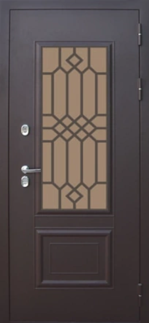 - Стеклопакет: 3 камеры, 83 мм., тонированно-зеркальный, фигурная ковка внутри